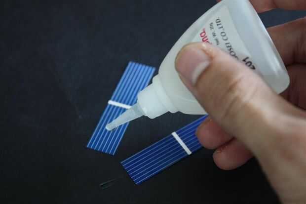 Unos toques de pegamento (otra vez, el muy fina líquida claro cosas--también conocida como cianoacrilato), unos segundos de presión y tú mismo tienes una conexión de serie solar!
