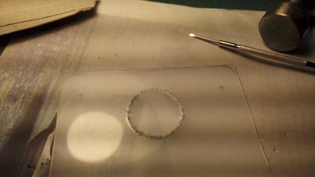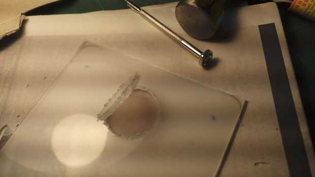 - Utilizar el destornillador como filo y martillo agujeros uno tras otro a lo largo de la circunferencia. (Como escultores griegos!)