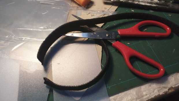 - Corte el velcro, lo suficientemente largo para envolver el alrededor de la caja con tapa, para el deseado grosor (alrededor de 5 mm)