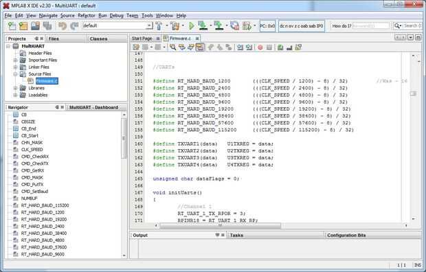 Flowcode 6 proporcionar algunas características de la caja tal como soporte UART y buffers circulares múltiples por lo que esto realmente ayudó a acelerar el desarrollo en términos de generación de código C pude copiar y pegar en mi programa.