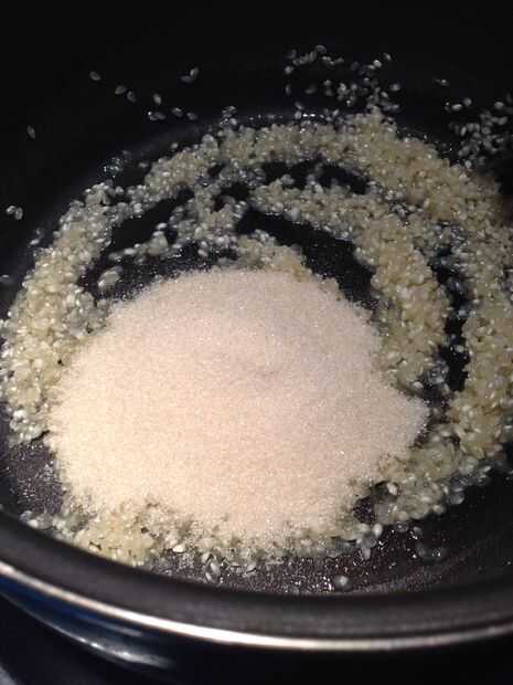 Añadir el azúcar y revuelva hasta que se disuelva. Seguir revolviendo por un par de minutos más.