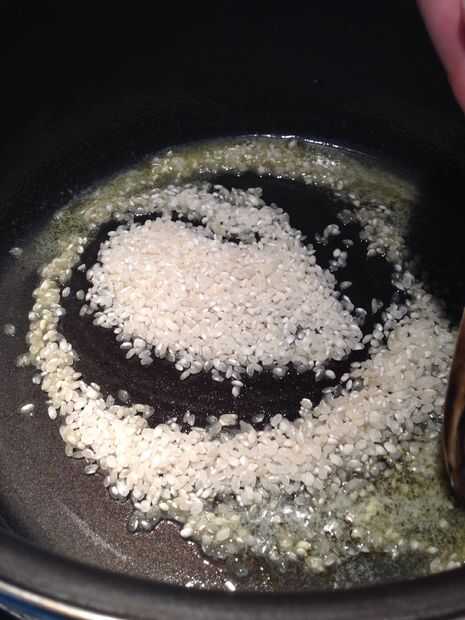 Derretir la mantequilla en una cazuela grande, añadir el arroz y revuelva.