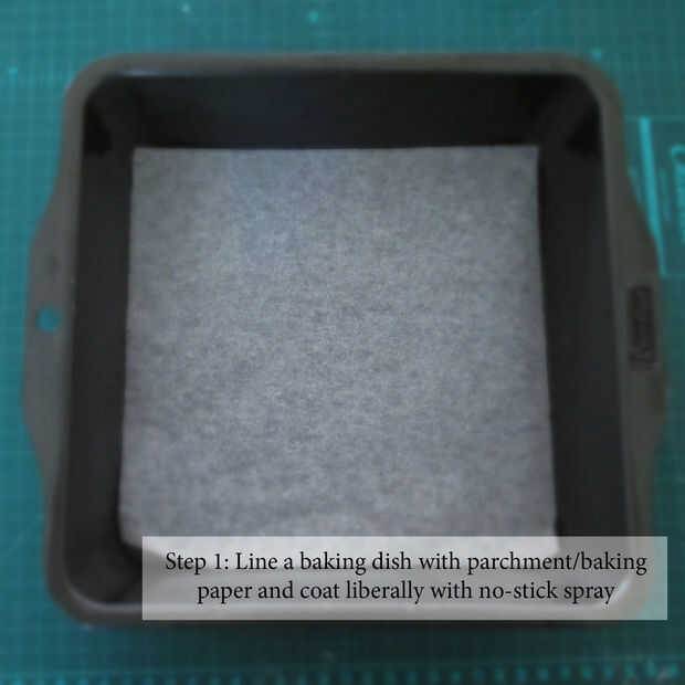 Preparar un ocho por ocho pulgadas para hornear. Hay muchas maneras de hacer esto, personalmente creo que la mejor manera es que forre el fondo con papel de hornear y luego espuma para arriba con spray antiadherente. La mezcla de estos brownies es muy pegajosa, así que asegúrese de preparar correctamente su bandeja. Otro método es engrasar el interior de la bandeja con un montón de rincones y cubrir con harina.