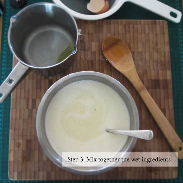 Una nota en la fusión de la mantequilla. Asegúrese de derrite la mantequilla lentamente - una parada de la estufa o en el microondas. Si la mantequilla está demasiado caliente cuando se agrega a los ingredientes húmedos, lo se 'cocinan' los huevos dando por resultado un producto final desagradable.