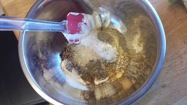 Precalentar el horno a 400 grados, y luego combinar las especias, crema agria y limón en un tazón y mezcle bien.