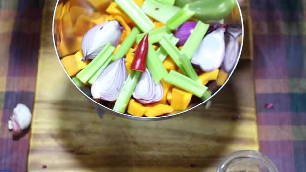 Sin complicaciones aquí tomar una guindilla roja o dos si te gusta picante extra, chuleta de la parte superior y echar en el recipiente.