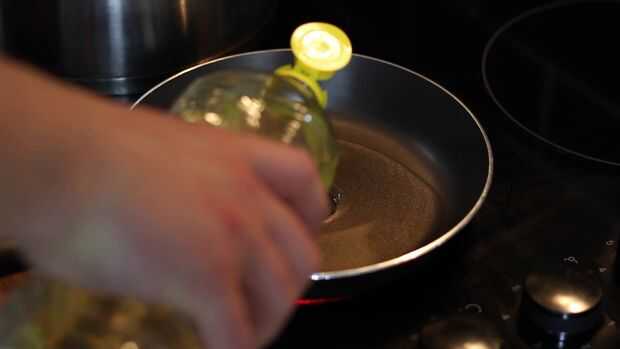1. Llene una sartén poco profunda con aceite vegetal y lleve a calentar a fuego medio, usted sabrá cuando esté listo cuando le cae un trozo de cebolla en el aceite, será ligeramente mayor.