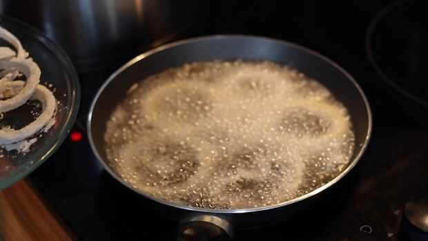 Mientras que la población va a hervir preparar y empezar a cocinar las cebollas crujientes.
