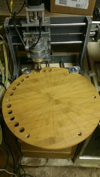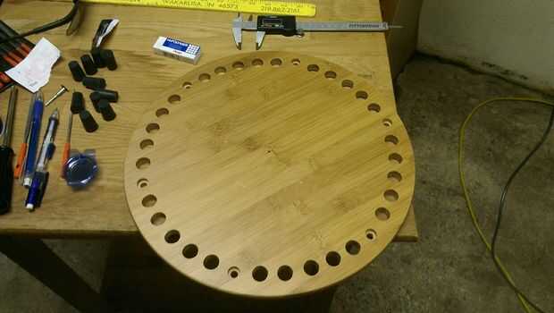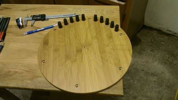 Cada tubo de ensayo es espaciado apartes 10 grados por lo que hay 5 por segmento 1/6. los 10 grados para cada uno de los soportes proporcionan el espacio adicional para el conjunto de 360 grados. Planifiqué mi espacio entre cada tubo con el tapón de goma como guía y colocarlo en la línea radial correspondiente.