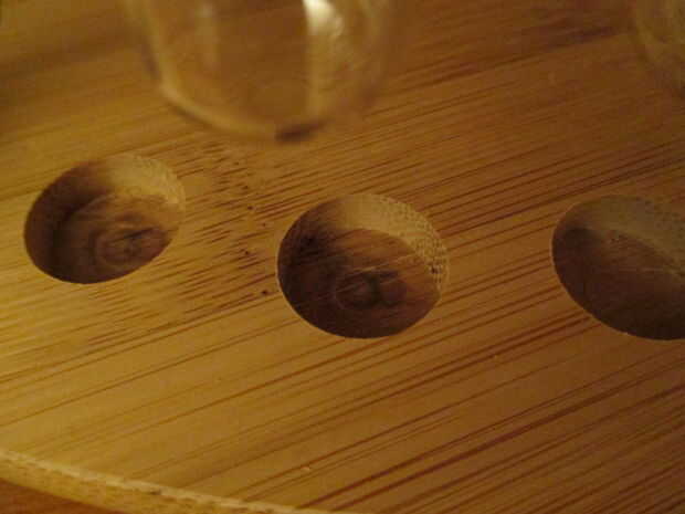 Una anomalía, siendo nuevo en el mundo del fresado de CNC, fue averiguar a qué velocidad podría cortar a través de este material de bambú sin estresar mi máquina, la broca o el bambú sí mismo. Quería cortar tan rápido como sea posible porque tenía un montón de agujeros a mill y no un montón de tiempo para hacerlo. Corte demasiado rápido aunque causado mi primer granito de arena a sobrecalentarse y ser un poco aburrido.