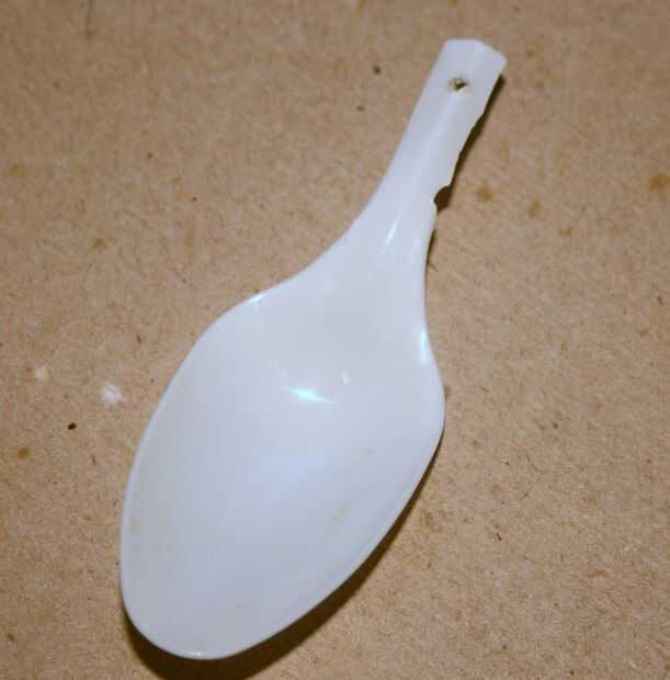 Luego proceder a doblar la cuchara hacia adelante y hacia atrás en ese momento. Una vez que el plástico es un poco más débil, la cuchara con las tijeras.