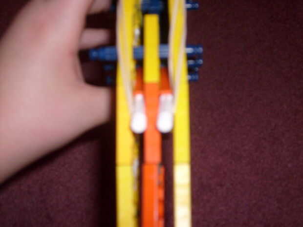 Muy fácil acually percutor consiste en una barra gris y conector naranja y una barra blanca (sería un buen tamaño de elestics sobre un buen espesor uno normal tamaño. las barras azules en la segunda foto son muy importantes así que conseguir ahora