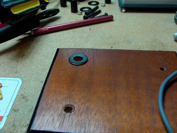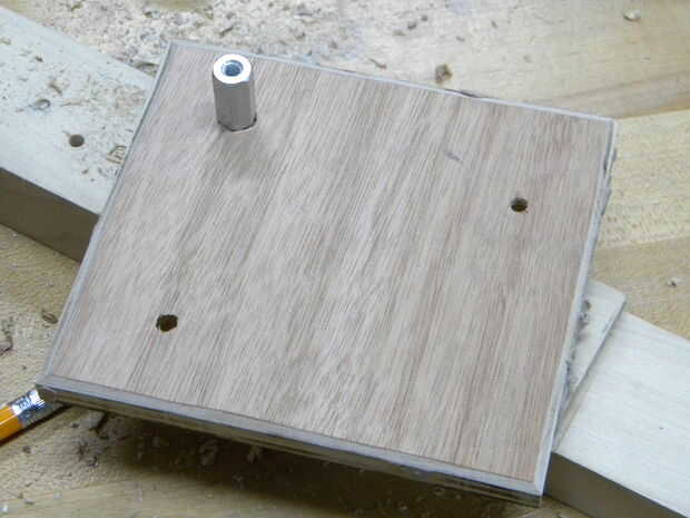 I los 3 agujeros un poco más grandes que el diámetro de los tornillos perforados, volcó la Junta y perforado a medio camino aunque con una broca un poco más grande que la tuerca que estaría utilizando para nada asomando fuera de la base y todo es agradable y seguro.