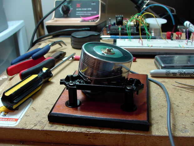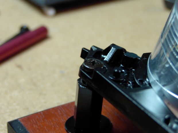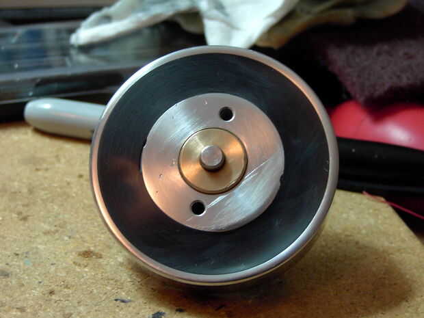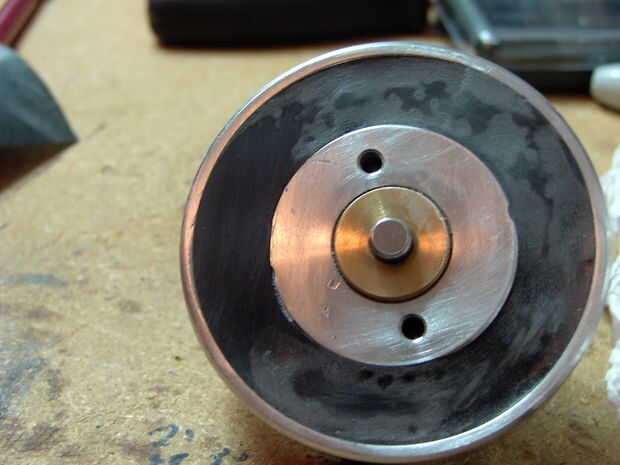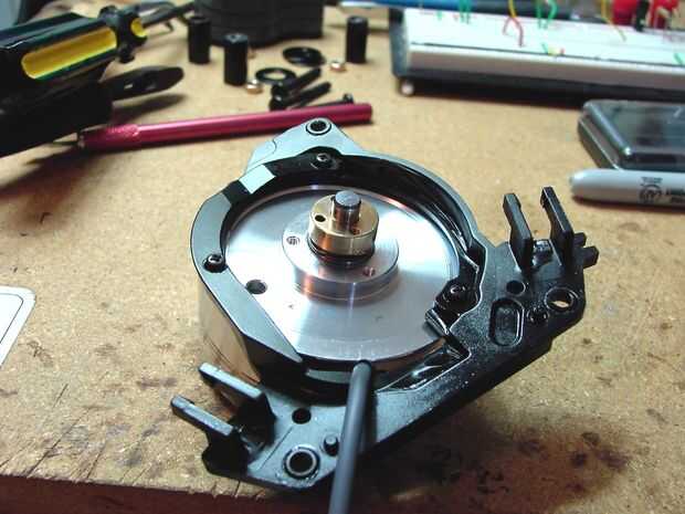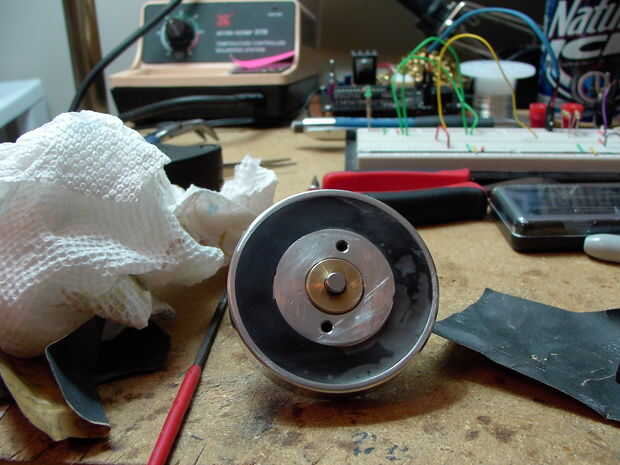 El espacio en la parte superior de la VCR cabeza entre el borde y el eje de centro estaba pidiendo algo diferente (y chico que lo conseguí). Puesto que la rueda del codificador se pega en la parte inferior es un poco líquida firmemente, pero no suficiente para la resina del poliester, este material hace agua mirada gruesa! Así que puse unas gotas de pegamento por cada agujero y dejar durante la noche, una vez que los agujeros fueron sellados vierte la resina seca. (lo siento fotos no tuvo que pasar muy rápido, pero su similar a todas las otras cosas de resina, mezclan goop con vierta endurecedor y oraran)
