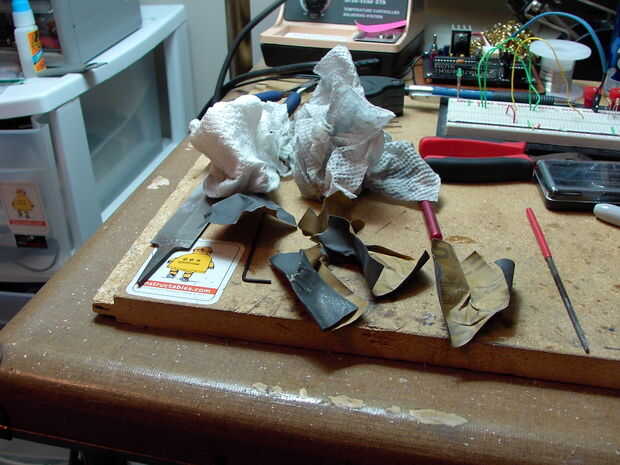 Por supuesto todo eso lijar comió el metal en múltiples direcciones, por lo que pongo arriba en mi taladro y celebró que mi almohadilla abrasiva para hacer un uniform(ish) satén acabado.