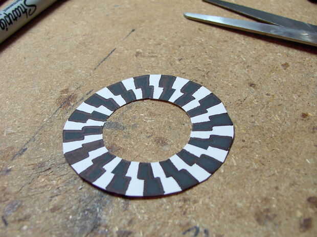Para resolver el problema número 2, que simplemente esbozar los bordes ásperos con un marcador sharpie, finalmente cortar la rueda del codificador y super pegué a la parte superior de la mitad de las cabezas VCR superficie interior.