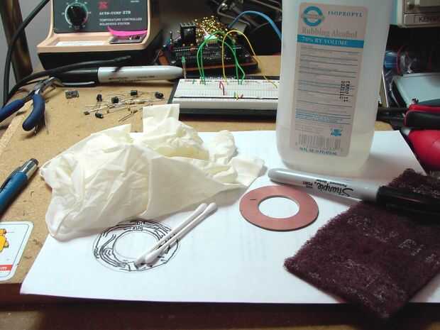 Usando mi lápiz sharpie prueba patrón repetí el proceso en el tablero usando sólo el marcador, haciendo pequeños cambios en las áreas de problema en su caso (a veces sólo donde la tinta del marcador impregnado en el papel). Errores pueden eliminarse con alcohol isopropílico, o con un cuchillo de la manía raspar la tinta seca de la zona