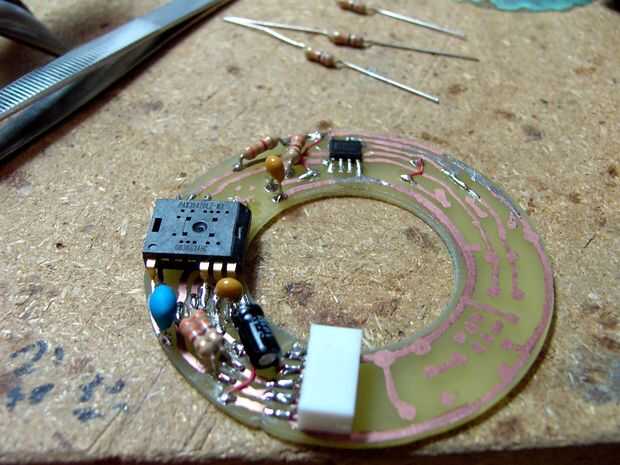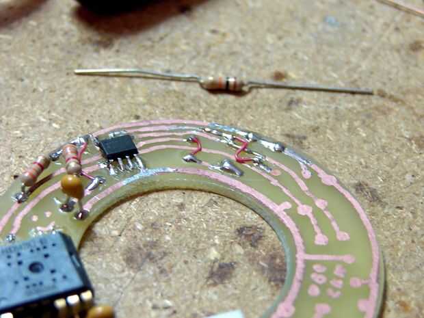 Empecé por soldar los 4 lugares que necesitan cables de puente (3 bien se me olvidaba uno al principio) y luego soldar los chips, y así sucesivamente