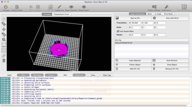 En mi caso estoy usando Repetier Host como mi software de impresión 3D con el metal Printrbot Simple y la máquina de cortar de ajustar en altura de la capa 0,2 mm.