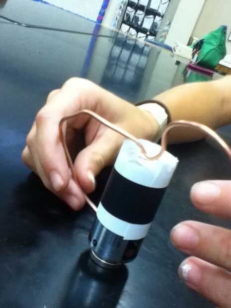 Poner la parte donde el corazón cuevas el lado positivo de la batería. Tiene que estar tocando la protuberancia. Tocar los extremos del alambre a los imanes. Asegúrese de que el cable no es tocar la batería o el suelo.