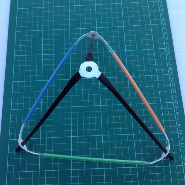 Tomar la base triangular del sombrero y observe que el Strawbee de dos patas en cada esquina tiene un agujero en él. Estos orificios son el tamaño ideal para enhebrar una paja a través.