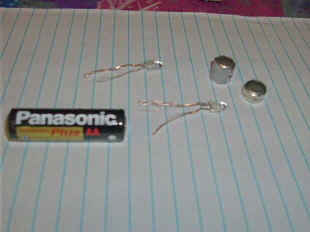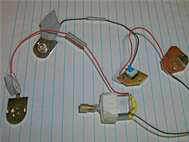 Baterías. Para los LEDs y el motor. Utilicé dos pilas de botón para cada LED y les grabó alrededor de los lados por lo que permanecen juntos.