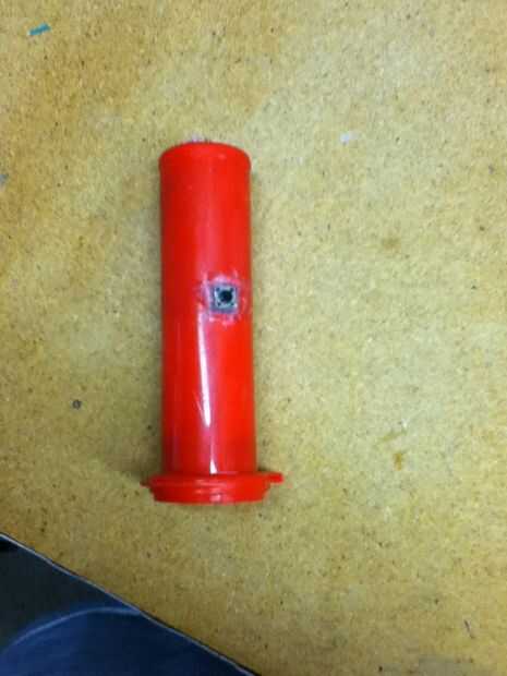 Para el acabado del mango, que caliente pegamento el motor firmemente en su lugar y caliente pegamento en su lugar, así el botón. Deslice la batería y cierre la tapa. Usted está ahora terminado hacer el mango para LED juguete de spinning!