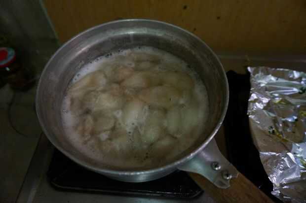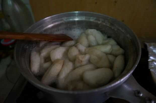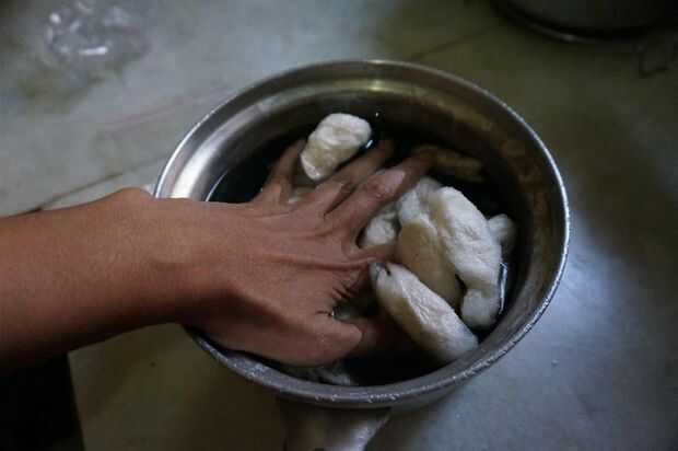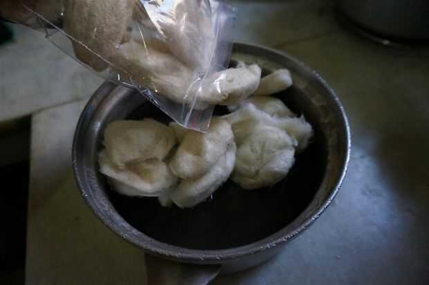Llene una olla con agua sobre 3/4tas del camino. Mezcle la lejía y bicarbonato de sodio. A continuación, poner los capullos en el agua y el empuje que en hasta que apretón el aire hacia fuera. Asegúrese de lavarse las manos luego como la lejía puede ser un irritante leve. (La lejía que utilizan es relativamente seguro y suave y se utiliza para suavizar el pescado seco y carne de cerdo en la cocina nativa).