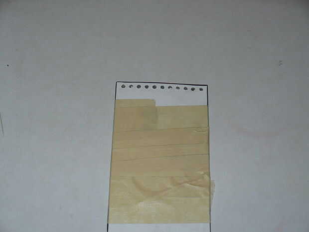 Pegue las 2 piezas de metal y la tapa de papel Junta (cubierta de papel en la parte superior).