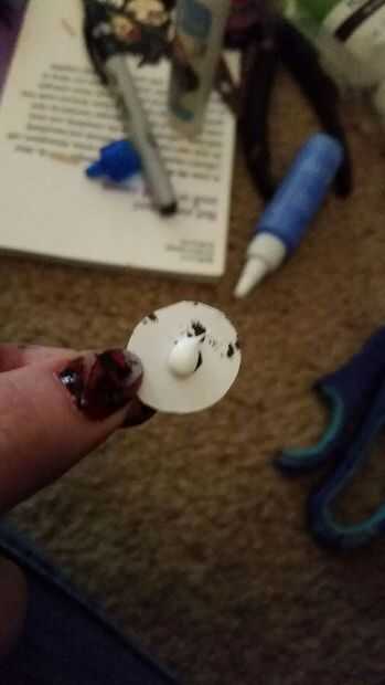 Puesto que los ojos son planos y la bola es redonda, no será un ajuste perfecto. Presioné suavemente las partes superior e inferior del ojo a la espuma para asegurarse de que había una buena adhesión entre al menos los 2 porciones de la espuma de poliestireno y papel.