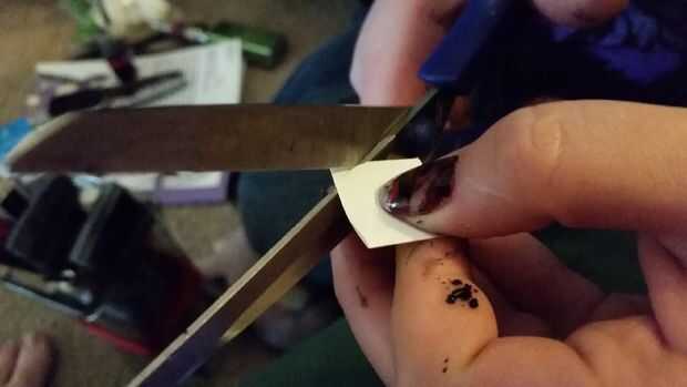 Para hacer los ojos, cortar un rectángulo pequeño de papel y doblar por la mitad. Luego cortar las esquinas y redondear para crear 2 ojos de igual tamaño. Punto del centro con un rotulador y listo para encolar. Recomiendo un muy pequeño punto de pegamento en la parte posterior (en el centro), pero asegúrese de que tener suficiente pegamento para que queda una capa bien gruesa después de que se separan alrededor con el dedo.