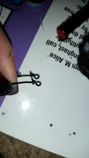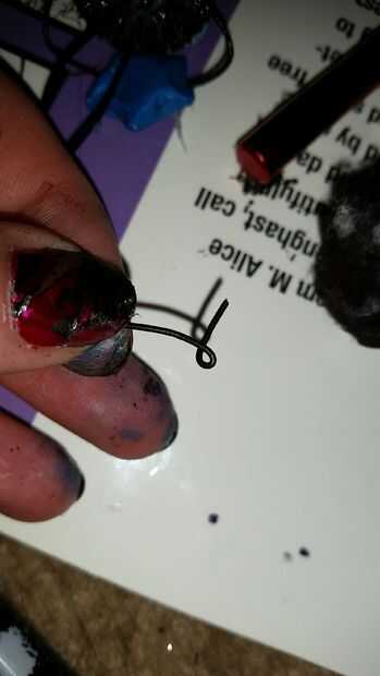 Casi listo! Si quieres colgarlos como yo lo hice, puede utilizar el alambre para crear un gancho pequeño. A tuerza el alambre en un bucle, entonces el bucle del gancho agarrador con unos alicates para sujetar en su lugar y enrolle el cable sobrante alrededor de la parte inferior del bucle. Luego apuñalar el gancho hecho en la parte superior de tu sprite. Lazo de alguna línea de pesca que para colgar más adelante.