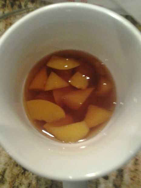 vacaciones o verano bebidaPaso 1: lo que usted necesita 2 tazas de té dulce y una taza de duraznos especiadosPaso 2: se permite que sea Vierta el té en los duraznos y mezclarPaso 3: envolver Vierta el té en una taza de calor o dejar frío