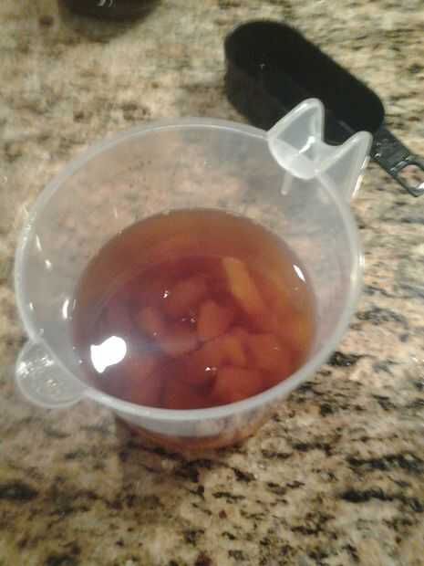 vacaciones o verano bebidaPaso 1: lo que usted necesita 2 tazas de té dulce y una taza de duraznos especiadosPaso 2: se permite que sea Vierta el té en los duraznos y mezclarPaso 3: envolver Vierta el té en una taza de calor o dejar frío