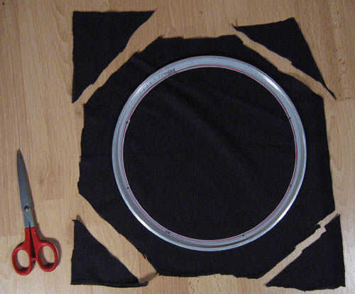 Comprobar su trabajo. La cara frontal debe ser agradable e incluso, y el paño debe superponer sobre la parte posterior del anillo de metal. Cuando todo está bien, puede cortar y retirar el hilo temporal en cruzar el centro.