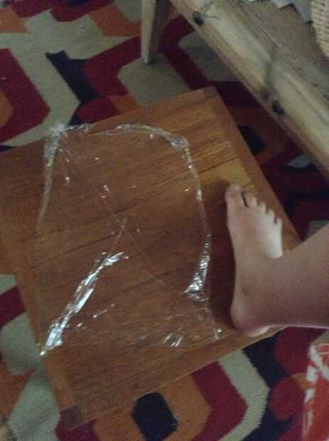 Ahora, arrancar una hoja de envoltura de plástico alrededor tan grande como la imagen, esto es importante. (Sin arrugas por favor) pie sólo para dar idea del tamaño