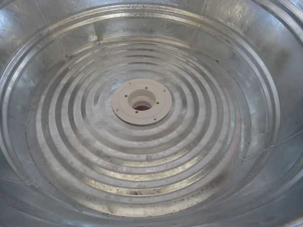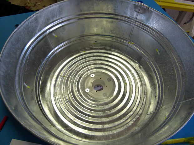 La tina galvanizada de 35 galones es donde ocurre toda la acción. Se encuentra dentro del agujero gigante que cortamos en la parte superior (en la sección 4).