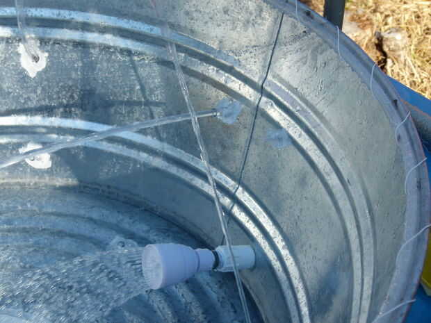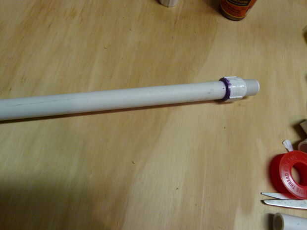 Montar los componentes y sellar con cemento de PVC. A continuación, perfore agujeros todo el palillo para crear boquillas. Puede utilizar brocas más grandes y más pequeños si quieres tener variedad. Me pareció más fácil hacer solo como un loco todo los palos. Aplique cinta de plomero en el extremo roscado. Esto ahora se puede instalar en cualquiera de los conectores de accesorios. Si se monta en el exterior, hace un gran objetivo para el sorteo de un anillo.
