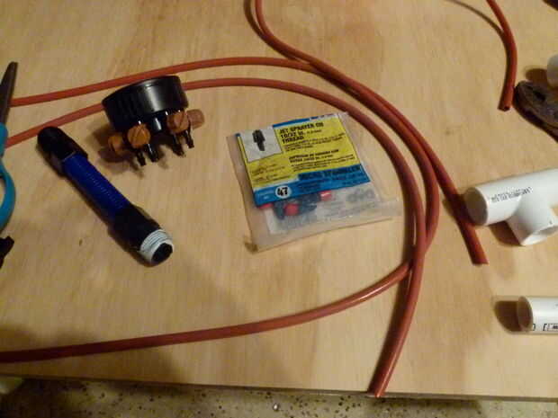 Este es otro juguete que básicamente está previamente construido. Simplemente cortar seis longitudes del tubo quirúrgico e instalarlos en el colector. A continuación, instale los inyectores de la bruma en los otros extremos de la tubería de 360 grados. Aplique cinta de plomero en ambos extremos del cuello de la regadera flexible. Instale un extremo en la instalación de tuberías del colector. El otro extremo se enchufa en cualquiera de los conectores de accesorios.