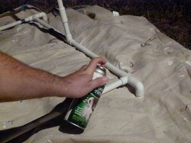 Cuadro #2 se muestra un simple MSPaint dibujo de la Asamblea. Técnicas de construcción de PVC estándar se utilizaron aquí así que no voy por otra vez. Las dimensiones son básicamente lo que será la superficie de tu juguete de agua. Puesto que mía es un juguete Plaza 39", cada una de las 'garras' que unen el lado debe ser correctamente espaciada. Esto fue descubierto fácilmente haciendo un ajuste de secado rápido antes de cualquier corte.