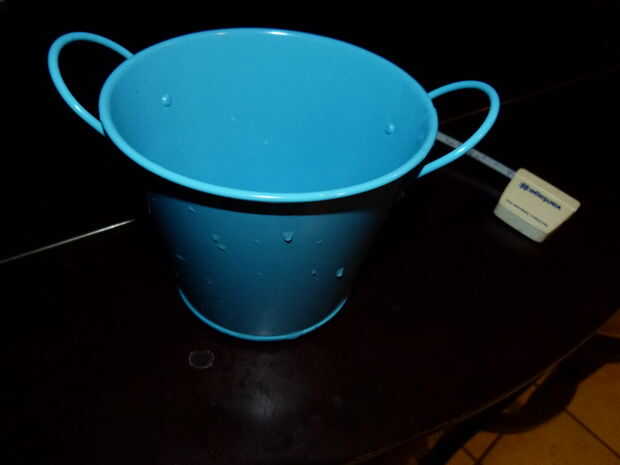 Por lo tanto en el diseño. Tomé un par de cubos de 1,5 qt al Garden Ridge, que es una tienda de artesanía y hobby aquí en el sur. Tenían éstos en todo tipo de colores y tamaños. Todo lo demás fue adquirido a Home Depot.
