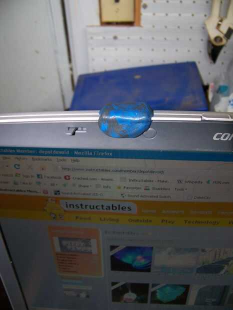 Después de tener el color que se arremolinaban a su satisfacción, gancho agarrador usted portátil o monitor de PC y cerca de dos tercios de su mezcla de sugru. Ya que estaba trabajando con un portátil, aplana hacia fuera el sugru había doblado sobre el borde superior del monitor y presiona firmemente en su lugar. Si trabajas con un CRT, esto imagino todavía trabajo bien, sólo sería capaz de doblar en tres lados.