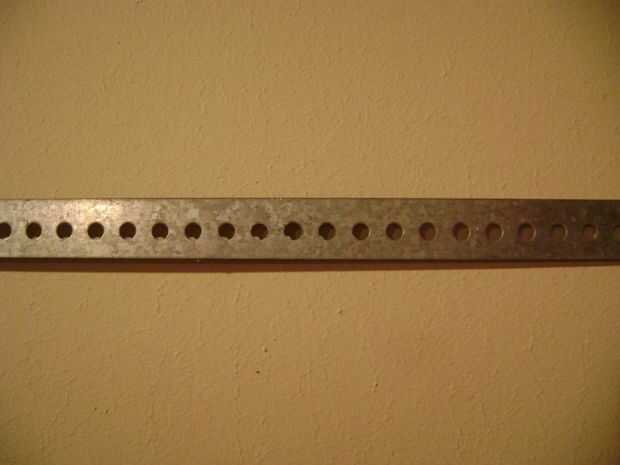 Esta es la parte más difícil del proyecto - las placas de Splivel. (Usar guantes y gafas de seguridad!) Tomar 1-3/8" placa plana y córtelo en secciones con la sierra. Cada sección completa de la placa de correa le dará 15 placas de Splivel (que tenga 18 años). Trocear la correa que tiene tres agujeros.