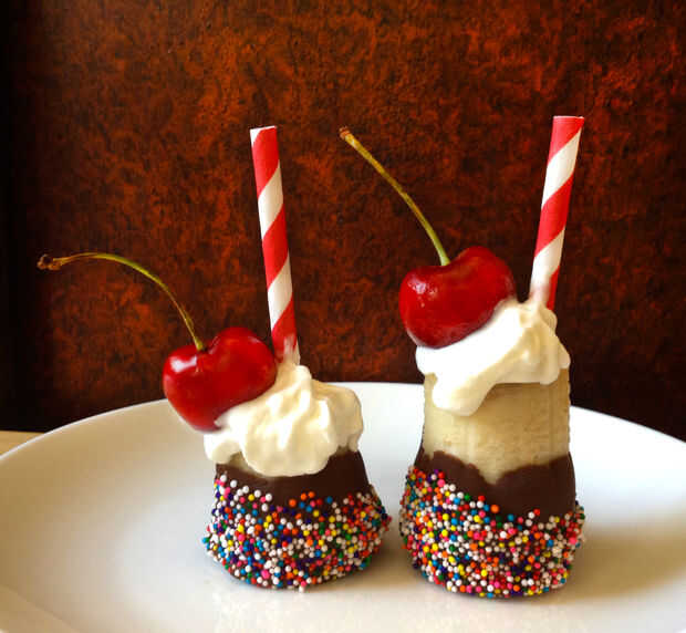 Me encanta chocolate plátano congelado cubierto pero es siempre una cantidad abrumadora de plátano congelado para hacer frente a esta es una solución y es un postre fresco partido. Hice estos para el día del padre, que después de un sorprendente steak BBQ. Mi mamá guardó el funcionar en la casa "vamos!! ¿se efectúa todavía? tenemos que ir pronto!"