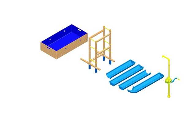 Tolvas: 15 cm ancho, plano fondo plástico canalones x 3.8 m; Piezas x 5; Curva de 90 grados de ángulo recto pieza x 1