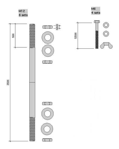 4 sets de M6 pernos con las tuercas de ala se utilizan para unir los travesaños.