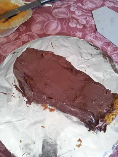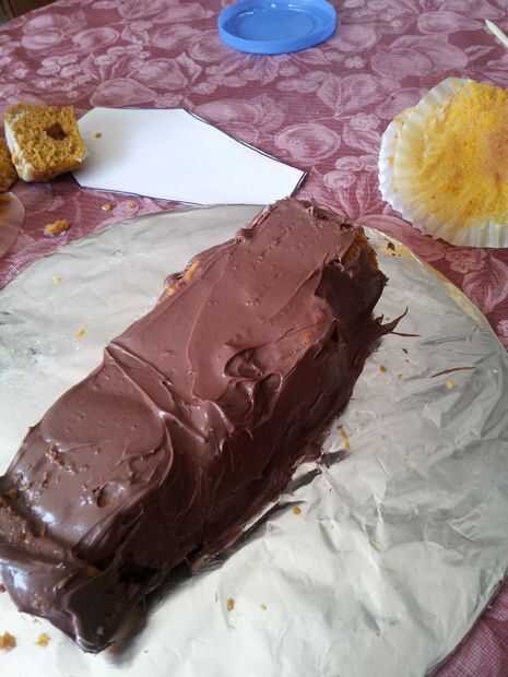 Frost su ataúd cuidadosamente y ajustar según sea necesario. Significado... Añadir trozos un poco aquí o allá o cortar aquí o allí hasta lograr la forma que necesita. Asegúrese de que está totalmente cubierta con escarcha.