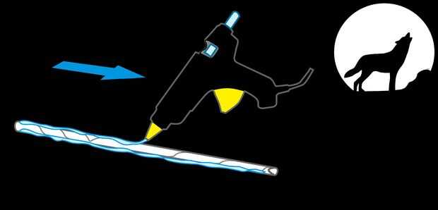 Utilizando la pistola encoladora añade tres tiras de pegamento hacia abajo el tallo. Usted puede hacer cualquier patrón que desee aquí, pero para mí, sólo hice tres ligeramente ondulado (pretende ser recta) líneas abajo de la longitud. Uno de los extremos va a ser enterrado en la cabeza de pompón y el otro en la parte inferior de un vaso, así que no tienes que ser demasiado exigente con el acabado en los extremos.