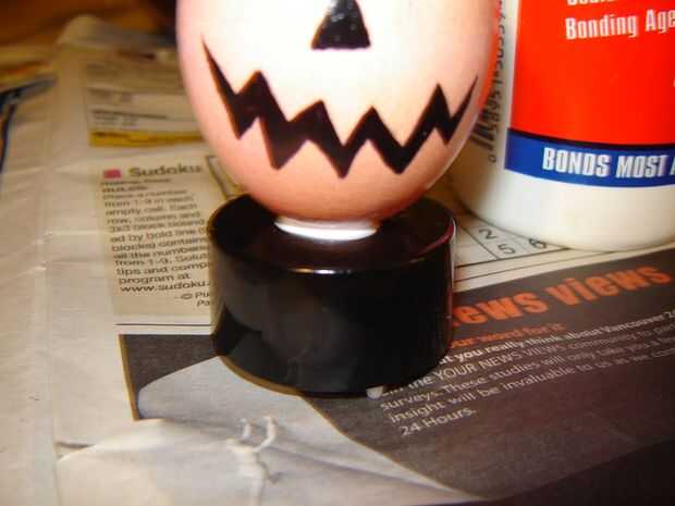 El último paso es pegar el huevo/bola de la vela. Asegúrese de que utilizar pegamento que seca transparente. Lenguado cola alrededor de la llama de la vela LED y huevo, asegúrese de que el huevo esté recto y no inclinado y que el huevo encaja perfectamente, con no grandes lagunas para filtrar luz. Deje que se seque.