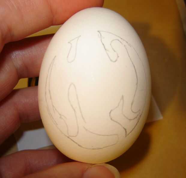Se puede dibujar manos libres o puede utilizar papel de transferencia que tengas. O puedes hacer lo que hice; que se imprima el diseño (después de asegurarse que era del tamaño adecuado para caber en el huevo), cortó hacia fuera y traza el diseño sobre el huevo.